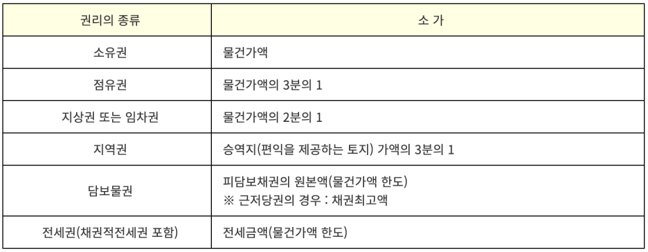 - 물건에 대한 권리의 가액 산정방법(‘민사사송 등 인지규칙’ 제10조)
