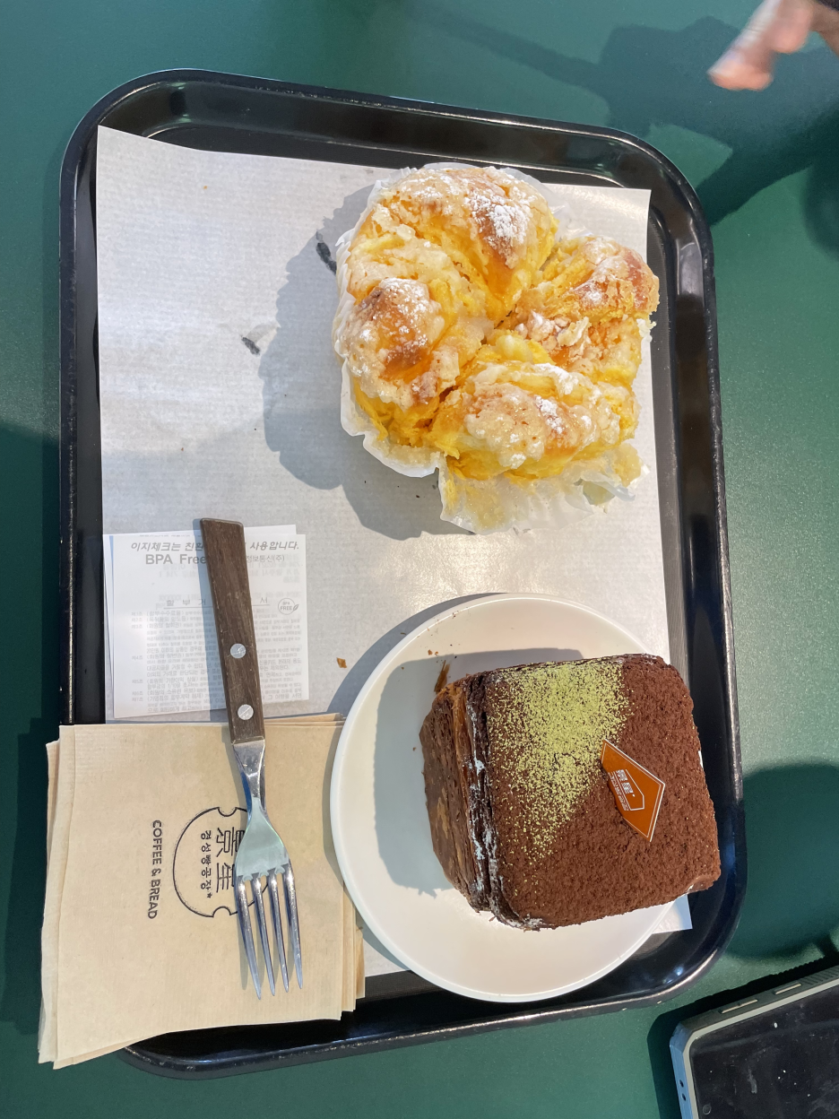 점심때가 되어서 배가 고픈것도 있지만 커피도 맛있고 빵도 맛있습니다.