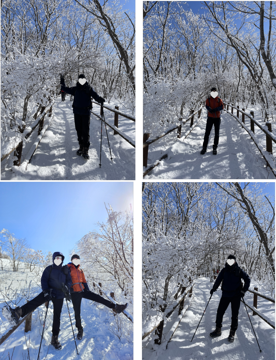 역시 꽃이 피었네요. 눈에만 담아가는 것이 아깝습니다. 카메라로는 모든 것을 담을 수 없어 더 안타깝습니다. 눈이 녹은 상태에서도 설산을 보면 기분이 상쾌해지고 머리가 맑아지는 것 같습니다. 일행들도 즐거워 합니다.