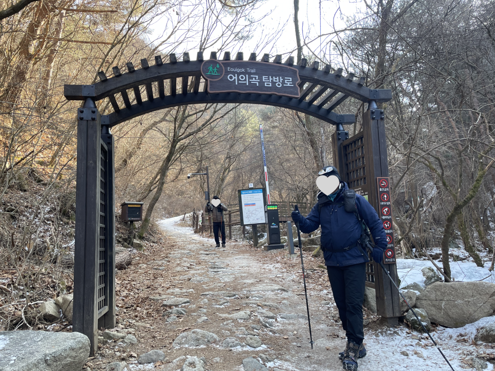 겨울산행은 갑작스런 날씨 변화가 있기에 준비물이 필요합니다. 아이젠, 장갑, 보온용품, 스틱, 여분의 양말과 등산복은 준비 해야 합니다. 탐방로 입구에서 출발합니다. 날씨가 포근해서인지 입구는 눈이 많이 녹았습니다. 등반객은 많이 보이지 않네요.