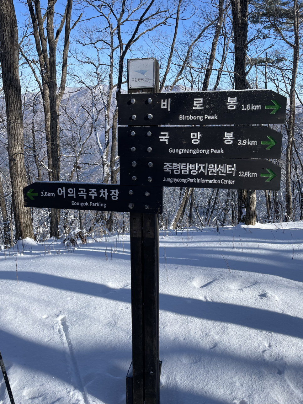 정상인 비로봉이 얼마 안 남았네요. 1.6km 남은거면 벌써 2/3를 올라왔네요. 올라갈수록 제법 눈이 많이 쌓여 있습니다. 겨울산행은 눈꽃을 보기 위해서 올라오는 거지요. 좀 더 위쪽이 궁금해집니다.